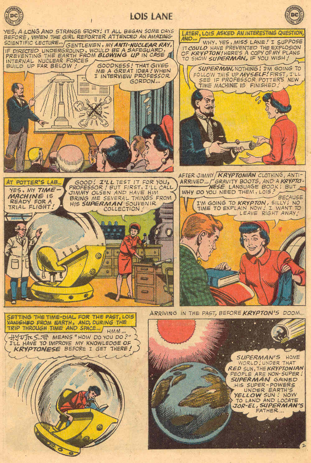 So Jimmy Olsen gives Lois a book to learn Kryptonese, Kryptonian clothing, anti-gravity boots, etc. and asks, “Why do you need them, Lois?”