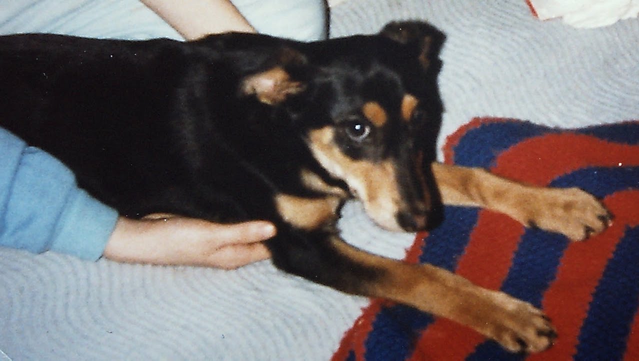 Still, we were immediately taken with the new visitor. She was clearly very young; based on the time she lost her baby teeth we would later be able to determine she was probably not more than ten weeks old the night Dad brought this little Doberman/shepherd mix home.
